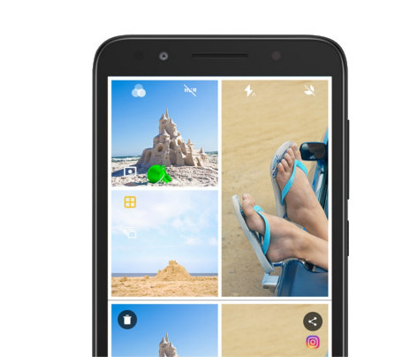 INSTANT COLLAGE Spraw, aby serie Twoich zdjęć stały się dziełem sztuki, dzięki Instant Collage. Wybierz jeden z czterech dostępnych układów, a samoregulujący wizjer pozwoli Ci doskonale wykadrować każde zdjęcie. Potem w jednej chwili możesz podzielić się swoim kolażem z przyjaciółmi, bez potrzeby dodatkowej obróbki. |