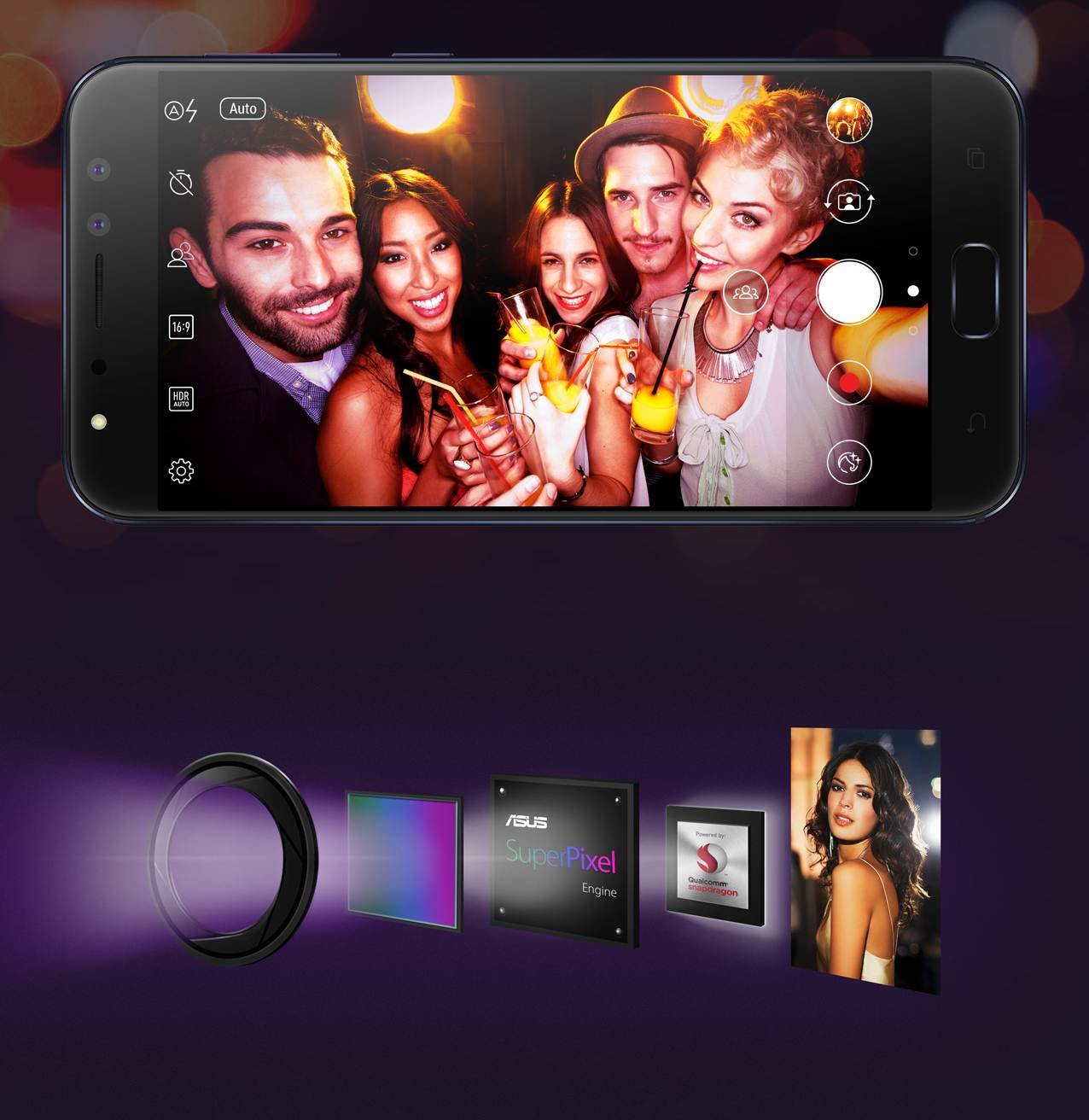 Piękne zdjęcia selfie o wysokiej rozdzielczości ZenFone 4 Selfie Pro posiada najbardziej zaawansowany na świecie aparat przedni wyposażony w matrycę Sony® IMX362, która oferuje dwukrotnie większą ilość fotodiod w porównaniu do typowych sensorów o tej samej rozdzielczości. Technologia aparatu 24 MP* DuoPixel™ korzysta z informacji wychwyconych przez czujnik, aby inteligentnie tworzyć 24-megapikselowe zdjęcia, w efekcie czego powstają piękne selfie o wysokiej rozdzielczości. |