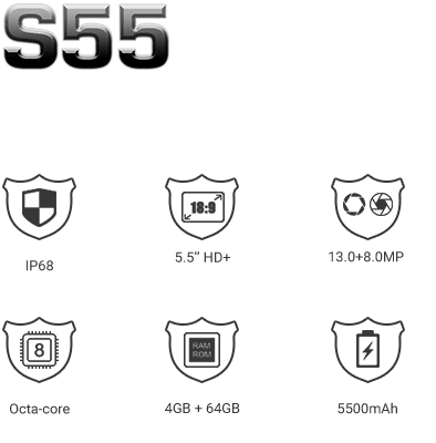 Aparat Doogee S55 został wyposażony w podwójny aparat 13+8MP oraz aparat Selfie 5MP. S55 wykona zdjęcia nawet w trudnych warunkach. |