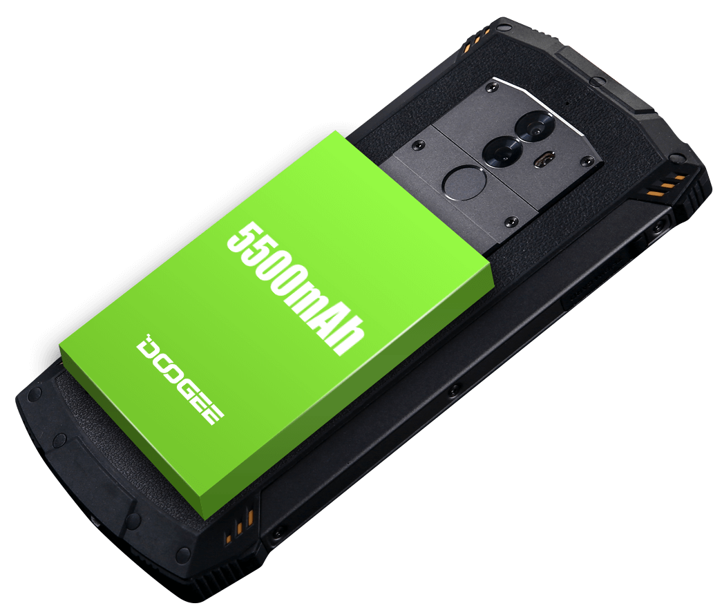 Wytrzymała bateria Bateria w Smartfonie DOOGEE S55 o pojemności 5500mAh pozwala na prawie całodzienne użytkowanie bez konieczności ładowania. |