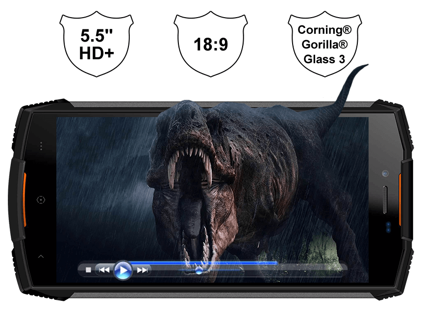 Wyświetlacz Ekran w DOOGEE S55 to 5.5 calowy IPS o rozdzielczości HD+ 1440x720px i proporcjach 18:9. O wytrzymałość ekranu dba szkło Corning Gorilla Glass 3. |