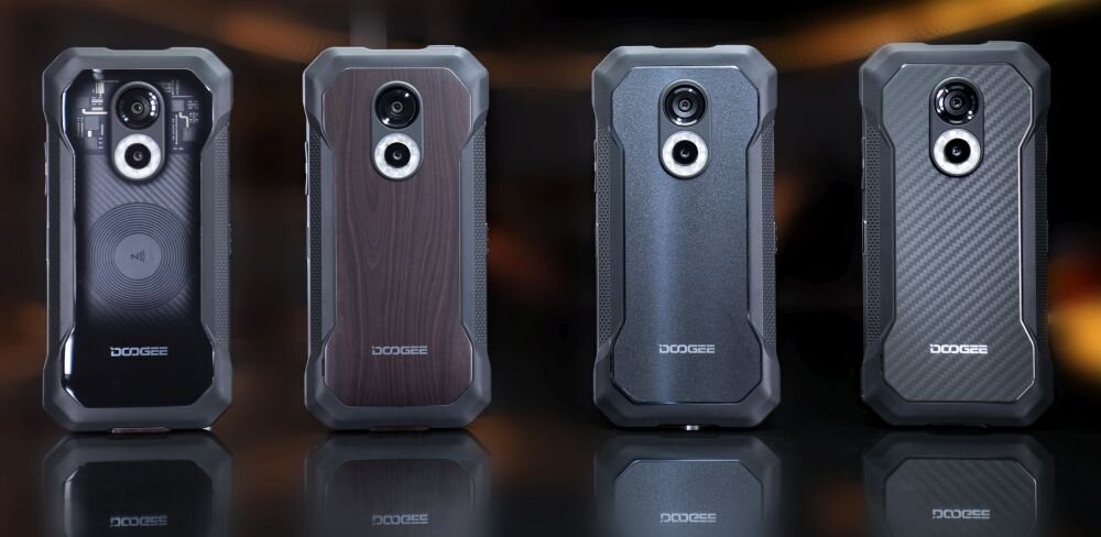 Dopasuj DOOGEE S61 Pro do siebie dzięki wymiennej tylnej obudowie. Od Ciebie zależy, czy wybierzesz tylną obudowę z eleganckim drewnianym designem, czy futurystyczną transparentną.