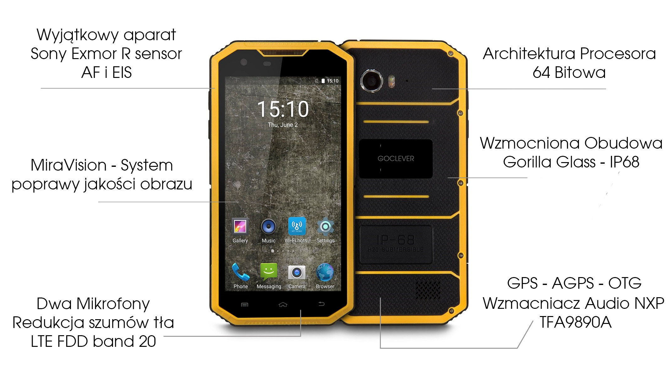 - Smartfon GOCLEVER Quantum 5 500 Rugged 1/16GB 5" Czarny FQ5500RUG