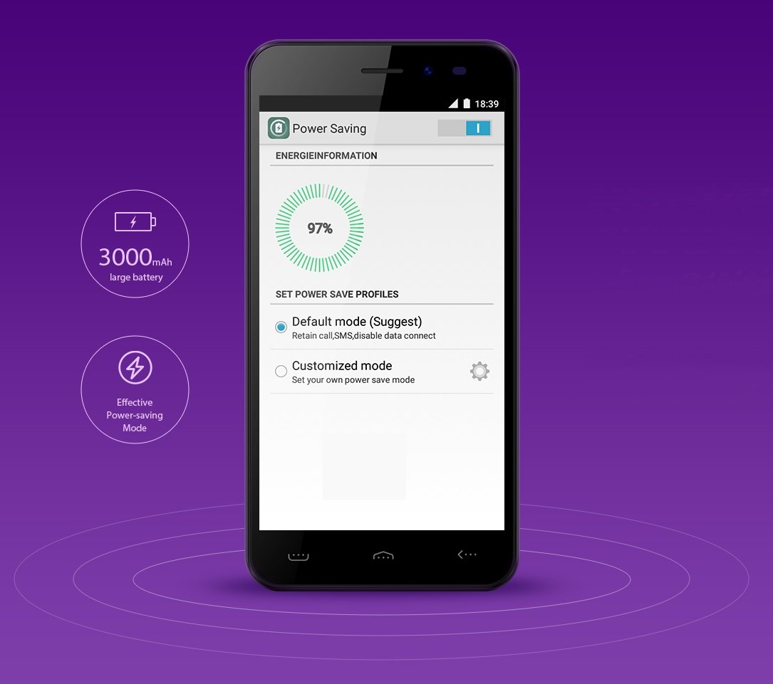 Pojemna bateria 3000 mAh Dzięki wydajnej i pojemnej baterii HOMTOM HT16 pozwoli Ci na więcej. Energooszczędny chipset MediaTek MT6580 bardzo dobrze zarządza energią, znacząco wydłużając czas pracy telefonu. |
