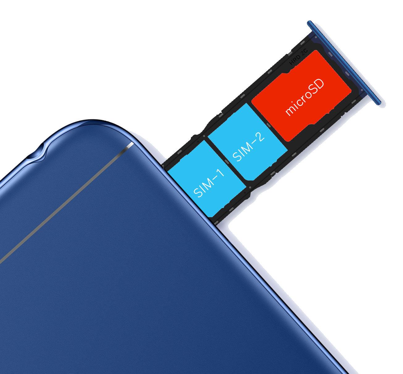 OBSŁUGA DWÓCH KART SIM I KARTY MICROSD Honor 7A jest wyposażony w slot na dwie karty SIM i kartę SD. Umożliwia to korzystanie z jednej karty do rozmów telefonicznych i drugiej do przesyłania danych. Możesz również włożyć do telefonu kartę microSD o pojemności do 256 GB do przechowywania zdjęć i danych. |