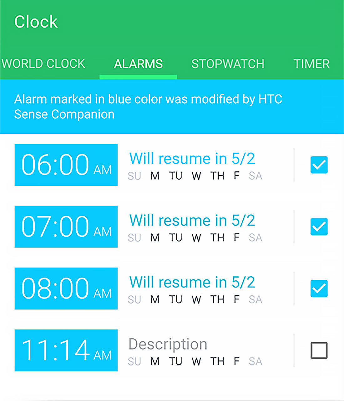 HTC Sense Companion nie tylko przypomni Ci o zbliżajacych się wydarzeniach oraz świętach, ale nawet wyłączy budzik w świąteczne poranki, żeby dłużej pospać. |