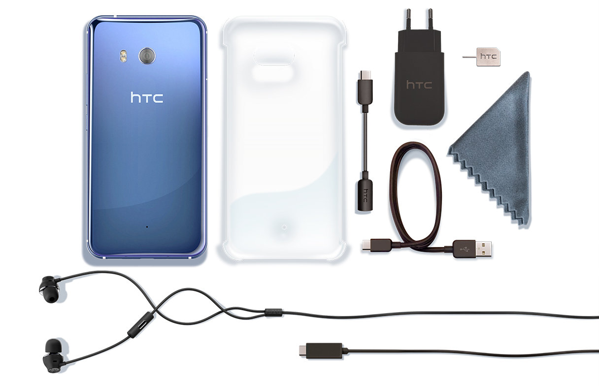 W zestawie z HTC U11 - Szybka ładowarka Quick Charge 3.0 - Kabel USB-C - Adapter USB-C do 3.5mm MiniJack - Etui do HTC U11 - Słuchawki HTC USonic™ z aktywną redukcją szumów - Ściereczka - Szpilka do karty SIM |