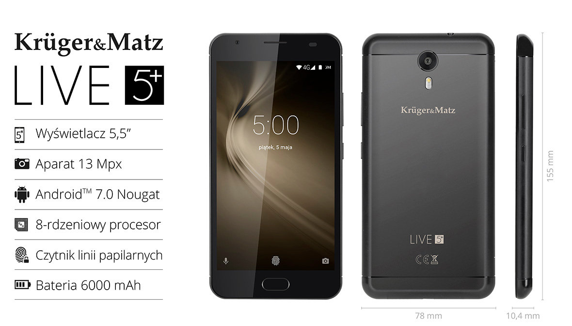 Smartfon KRUGER&MATZ Live 5+ 4/64GB 5.5" Czarny KM0448-B