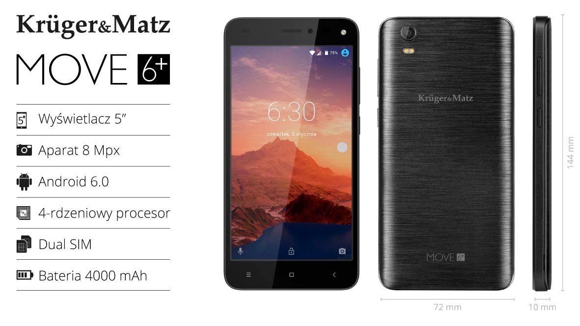 Smartfon KRUGER&MATZ Move 6+ 1/8GB 5" Czarny KM0443-B