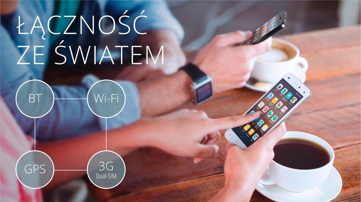 Wszystko czego potrzebujesz Smartfon MOVE 6+ posiada wszystko, co posiadać powinno każde urządzenie mobilne. Poza modemem 3G, dostęp do sieci zapewni Ci również łączność Wi-Fi. Dodatkowo, technologia Bluetooth ułatwi transfer zdjęć, muzyki lub innych danych bez zbędnych kabli i przewodów, a GPS sprawi, że zawsze trafisz do celu. |
