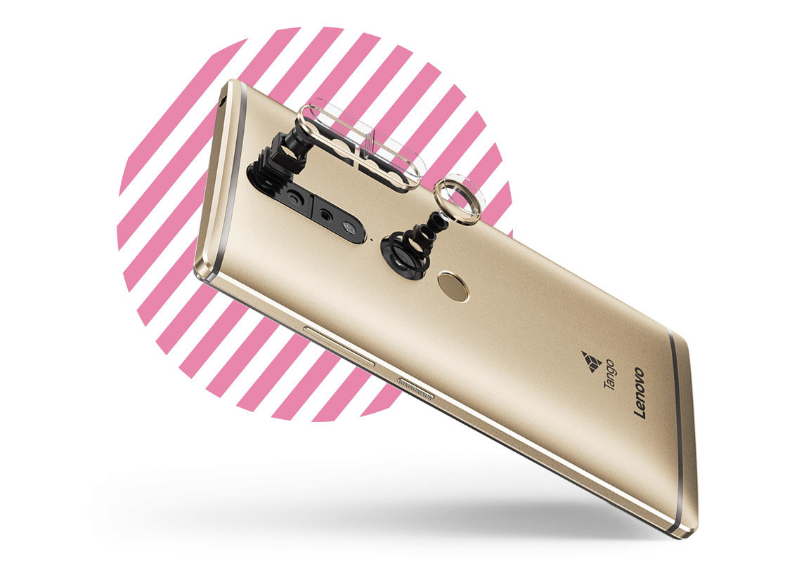 | Smartfon Lenovo Phab 2 Pro Lenovo Phab 2 Pro jest pierwszym na świecie smartfonem z oprogramowaniem Tango stworzonym przez Google do obsługi gier i aplikacji wykorzystujących rozszerzoną rzeczywistość. Nakładając obiekty na obraz świata rzeczywistego, Phab 2 Pro otwiera zupełnie nowe możliwości eksploracji i zabawy, m.in. mierzenie przedmiotów za pomocą telefonu, podgląd nowych mebli w domu czy hodowanie wirtualnych zwierząt. |