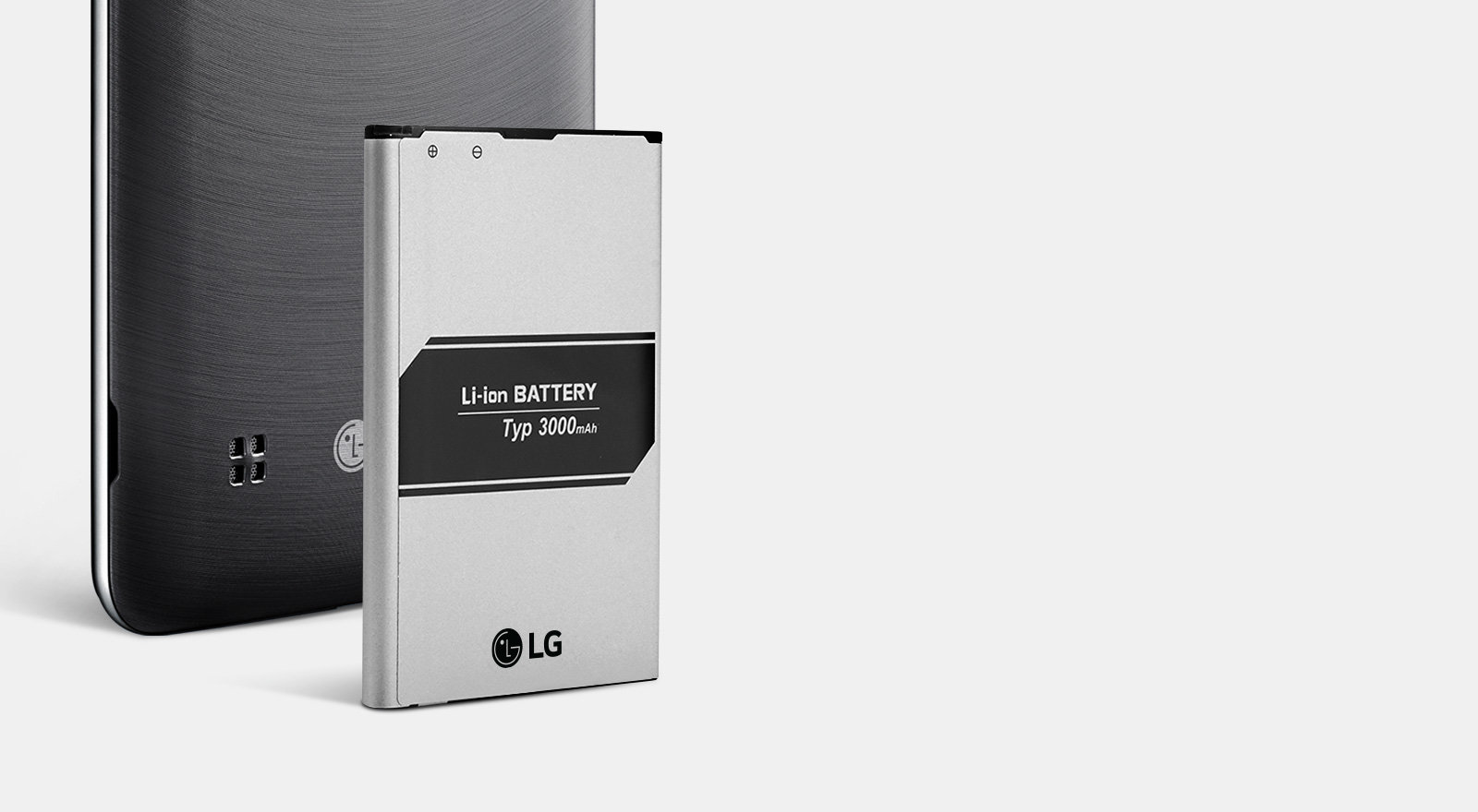 Wyjmowaną baterię o pojemności 3000 mAh można łatwo wymienić, aby dłużej korzystać ze smartfona LG Stylus 2 bez podłączania ładowarki.