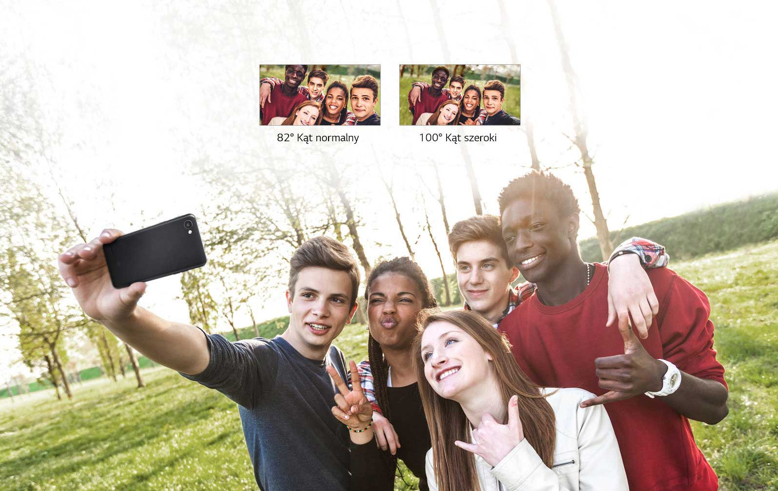 Szerokie selfie Ja, Ty i wszyscy pozostali Rób jeszcze lepsze selfie za pomocą 100-stopniowego obiektywu w przednim aparacie, w którym zmieścisz więcej znajomych i otoczenia. Szeroki kąt widzenia pozwala uchwycić całą scenę, możesz też ustawić normalny kąt widzenia, aby otrzymać bardziej zwięzły kadr. |