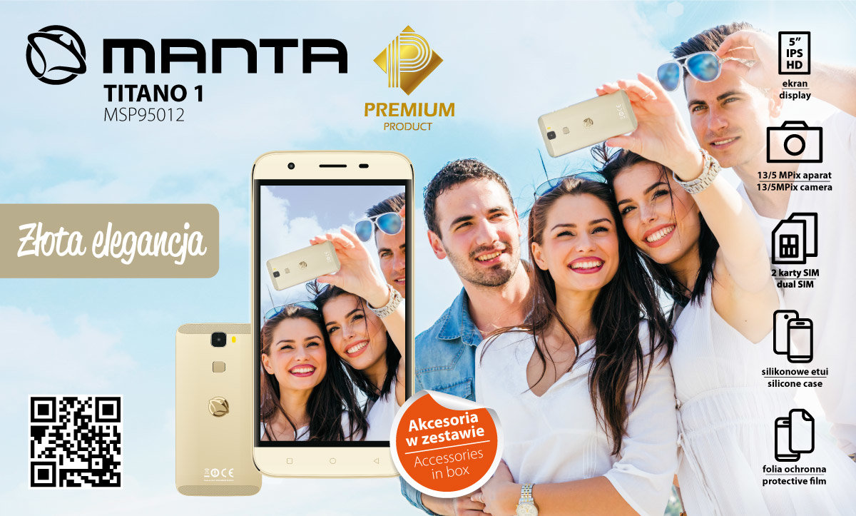 - Smartfon MANTA Titano MSP95012 1/8GB 5" Złoty
