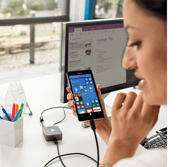 Wyposaż swoje domowe biuro w stację dokującą HD 500 firmy Microsoft, by móc zrobić więcej bez komputera. Chcesz napisać długi e-mail albo pracować nad arkuszem kalkulacyjnym? Po prostu podłącz smartfon Lumia 950 XL w stacji dokującej, by móc skorzystać z monitora, myszki i klawiatury zupełnie jak podczas pracy na komputerze. Teraz brak laptopa nie zmniejszy skuteczności Twojej pracy, a to dzięki większemu ekranowi i wygodzie pełnowymiarowej klawiatury.