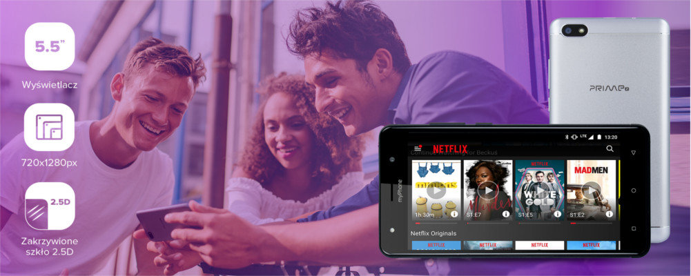 Wszystko, co warto zobaczyć Oglądaj filmy ze znajomymi, graj w gry, przeżywaj emocje, Oglądaj filmy ze znajomymi, graj w gry, przeżywaj emocje. myPhone Prime 2 to elegancki smartfon z dużym, 5.5-calowym ekranem HD IPS, który zapewnia prawdziwą ucztę dla zmysłów. Ma niezwykle smukłą, metalową obudowę (grubość 8,5 mm!), która zachwyca designem. |