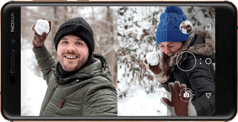 Publikuj bez przeszkód Dzięki optyce ZEISS i dwubarwnej lampie błyskowej każde zdjęcie zrobione Nokią 6 nadaje się do natychmiastowego udostępnienia. Nagrywaj filmy 4K i natychmiast wybieraj z nich wysokiej jakości klatki, które możesz powiększać i kadrować bez negatywnego wpływu na jakość. |