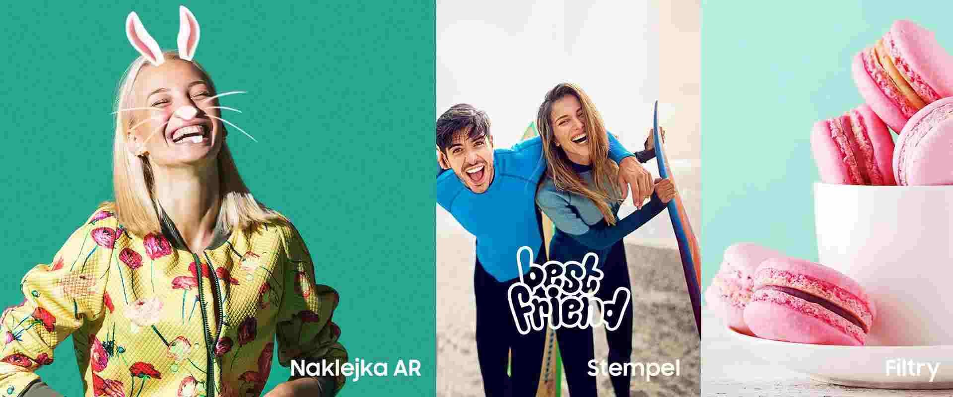 - Dzięki Galaxy A10 możesz nie tylko robić fantastyczne zdjęcia, ale także zabawnie je udekorować*. Uzupełniaj swoje fotki naklejkami, pieczątkami czy filtrami i udostępniaj je w mediach społecznościowych. Personalizuj swoje fotografie i dziel się nimi z przyjaciółmi.