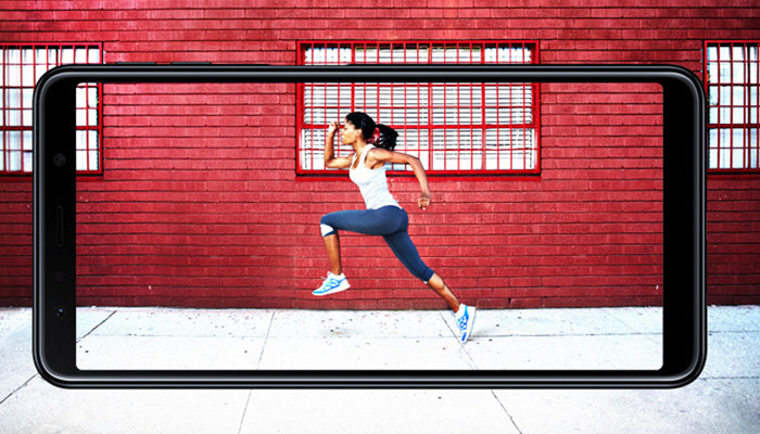 Galaxy A7 2018 wyświetla obraz w formacie 18.5:9. Daje on szeroki, poziomy obraz, zapewniając niezwykłe doświadczenia filmowe. Dzięki Infinity Display przeniesiesz się w świat oszałamiającej rozdzielczości, bogactwa kolorów oraz imponującej dokładności detali.