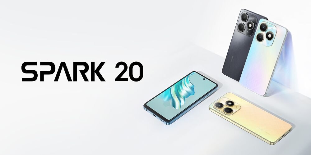 TECNO SPARK 20 to zaawansowany telefon charakteryzujący się smukłymi ramkami, obszernym ekranem 6.56 cala z częstotliwością odświeżania 90 Hz oraz rozbudowaną pamięcią wewnętrzną 256 GB. Model ten wyposażono w przedni aparat 32 Mpx z lampą do selfie, a także funkcję Dynamic Port dla wygodnych powiadomień. Urządzenie działa na ośmiordzeniowym chipie Helio G85, ma stereo głośniki, tylny aparat 50 Mpx, pojemną baterię 5000 mAh oraz czytnik linii papilarnych umieszczony na boku urządzenia.