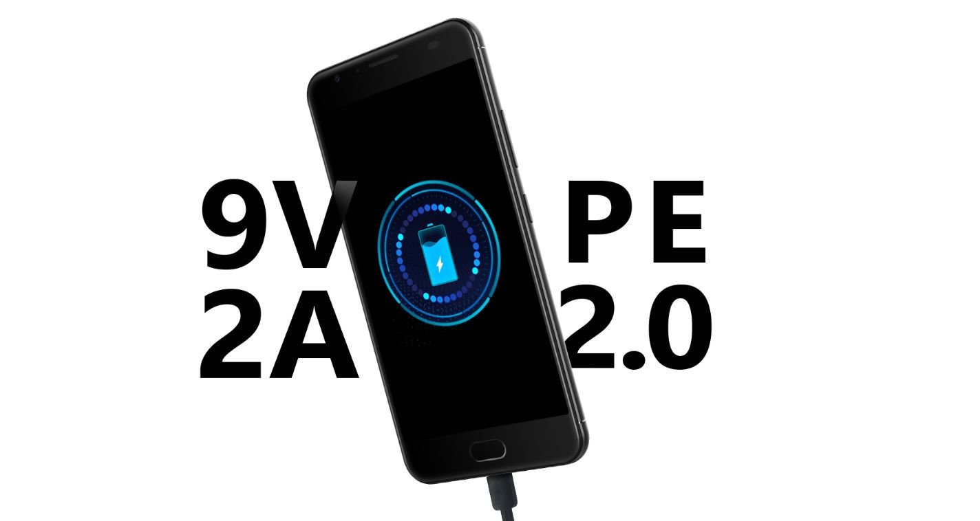Moc na cały dzień w pół godziny Stosując standard Pump Express 2.0 w szybkiej ładowarce 9V/2A możemy naładować baterię Ulefone Power 2 o pojemności 6050mAh w ciągu 2-3 godzin. Innymi słowy, pół godziny ładowania wystarczy na cały dzień użytkowania. |