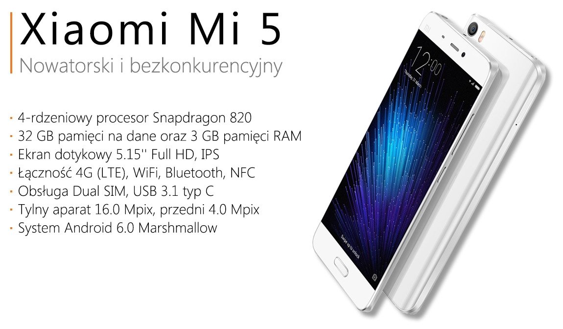 - Smartfon XIAOMI Mi5 3/32GB 5.15" Biały XCE_MI5_32WH