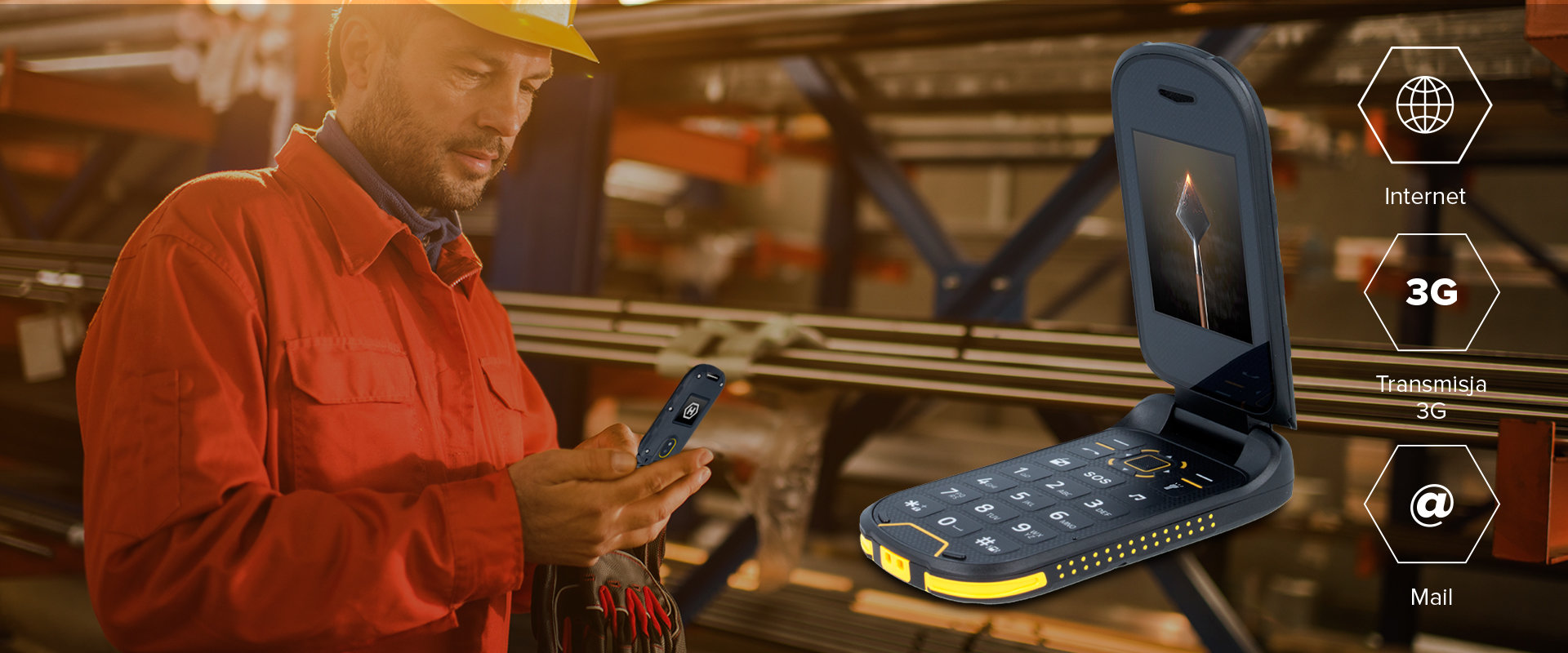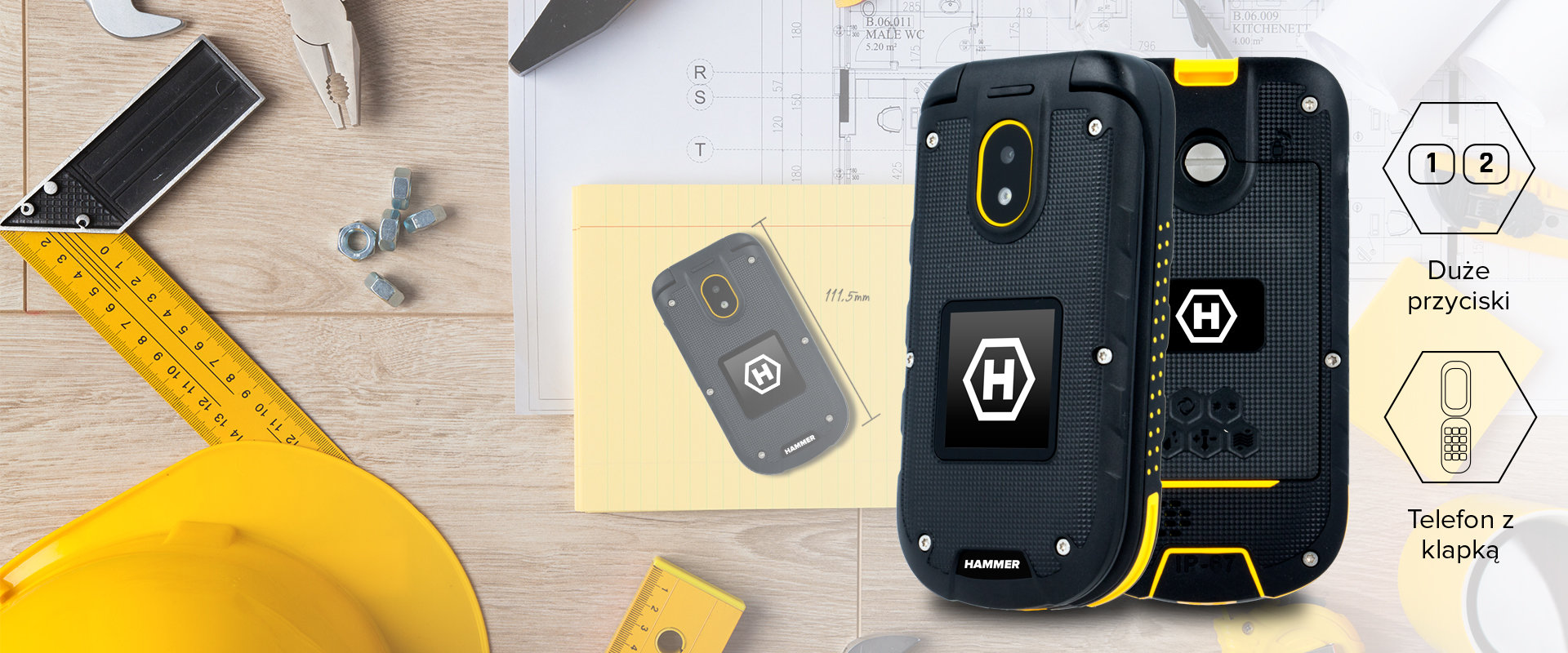 Niezwykle poręczny HAMMER BOW+ to niezwykle poręczny i kompaktowy telefon. Dzięki niewielkim rozmiarom 111.5 x 57,2x21 mm i wadze z łatwością zmieści się do kieszeni. Duże klawisze oraz odbieranie rozmów poprzez otwarcie telefonu sprawiają, że telefon jest niezwykle wygodny w obsłudze - nawet w roboczych rękawicach  |