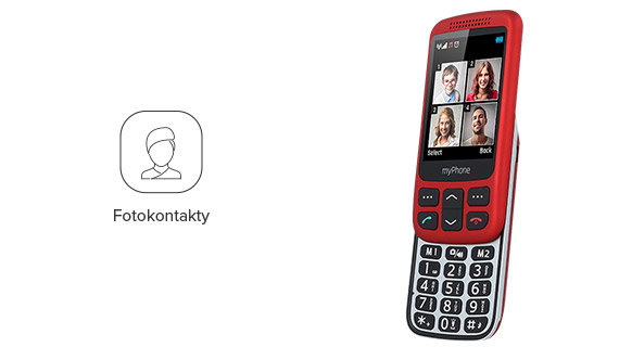 myPhone Halo S został wyposażony w wyjątkową opcję ustawienia 8 fotokontaktów. Wybierz znajomych, dodaj ich zdjęcia i kontaktuj się z nimi jeszcze łatwiej niż dotychczas. Przycisk SOS |