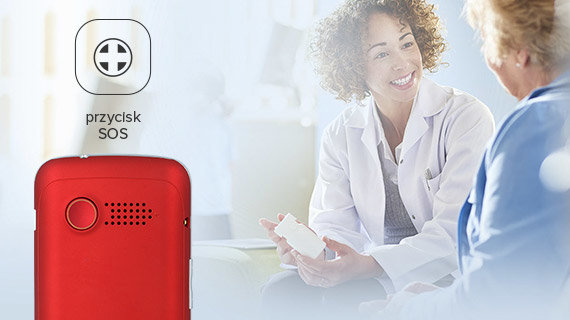 Telefon posiada również przycisk funkcjonalny SOS dający możliwość nawiązania połączenia / wysłania wiadomości sms do wcześniej zaprogramowanego numeru za pomocą jednego kliknięcia. |