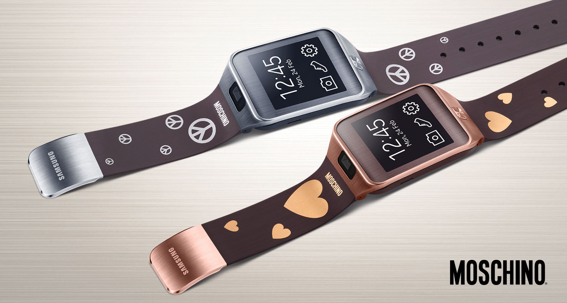 | Moschino Collaboration Design To wspólne dzieło Moschino i Samsung Gear 2. Wzornictwo jest zabawne, urzekające i atrakcyjne. Zarówno wzór w serca, jak i wzór z wykorzystaniem pacyfki tworzą unikatowy styl. |