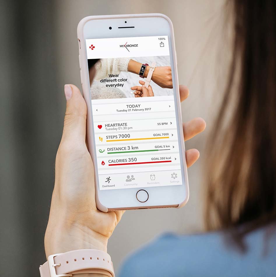 Śledź swoje postępy Smartband przesyła Twoje dzienne postępy do aplikacji w smartfonie dzięki czemu masz wszystko pod kontrolą. |