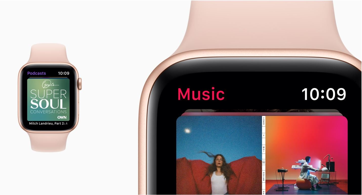 Prosto z nadgarstka możesz strumieniować zawartość Apple Music i Apple Podcasts. Do wyboru masz ponad 50 milionów piosenek. A gdyby tego było mało, możesz słuchać także ulubionych audycji, znanych postaci i doniesień z całego świata. Czego uszy zapragną. Rozruszaj trening. Albo rusz głową.