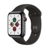 - APPLE Watch 5 GPS + Cellular 44mm koperta ze stali nierdzewnej (gwiezdna czerń) + pasek sportowy (czarny)