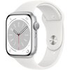 APPLE Watch 8 GPS 45mm koperta z aluminium (srebrny) + pasek sportowy (biały)