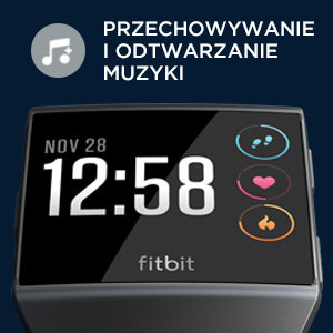 Przechowywanie i odtwarzanie muzyki Dzięki Fitbit Ionic możesz przechowywać i odtwarzać ponad 300 utworów, które natychmiast zmotywują Cię do ćwiczeń. |