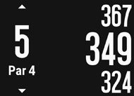 | Zacznij grę Sparuj urządzenie ze smartfonem, aby pobrać mapy starych i nowych pól z naszej bazy danych zawierającej ponad 38 tysięcy pól golfowych na całym świecie. Aplikacja do gry w golfa aktualizuje mapy oraz rejestruje numer dołka i normę. System GPS mierzy dystans do lay-upów i dołków zakręcających, a także dystans do początku, końca i środkowej części greenów, zwiększając użyteczność całego obszaru dołka. Indywidualna tablica wyników z punktacją stroke play pozwala określić, czy jesteś poniżej czy powyżej normy. Wystarczy nacisnąć przycisk, aby dokonać pomiaru dystansu uderzenia. Stoper partii mierzy czas spędzony na polu, a wbudowany akcelerometr monitoruje liczbę kroków. |