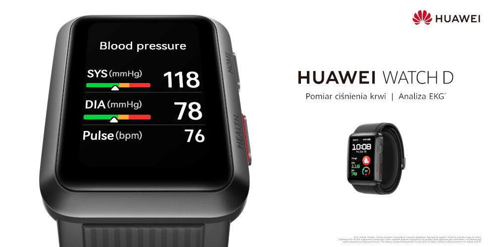 Jeżeli dbasz o swoje zdrowie, masz wysokie wymagania i szukasz świetnie wyposażonego smartwatcha, HUAWEI WATCH D jest właśnie dla Ciebie. W kwestii dbania o Twoje dobre samopoczucie WATCH D jest niezwykle wszechstronny. Możliwe, że zainteresują Cię: ulepszony pomiar tętna, profesjonalna analiza snu, monitorowanie saturacji (SpO2), a także ponad 70 trybów treningowych. Ale to nie wszystko. Tu następuje czas na dwa asy spod rękawa: analizę EKG oraz przełomowy pomiar ciśnienia krwi. Mimo dość kompaktowej konstrukcji, znajdziesz tu minipompkę i poduszkę powietrzną, które umożliwiają dokładny pomiary ciśnienia krwi. Z wszystkich tych funkcji skorzystasz przez 7 pełnych dni na jednym ładowaniu, w połączeniu zarówno ze smartfonami z Androidem, jak i z iOS.