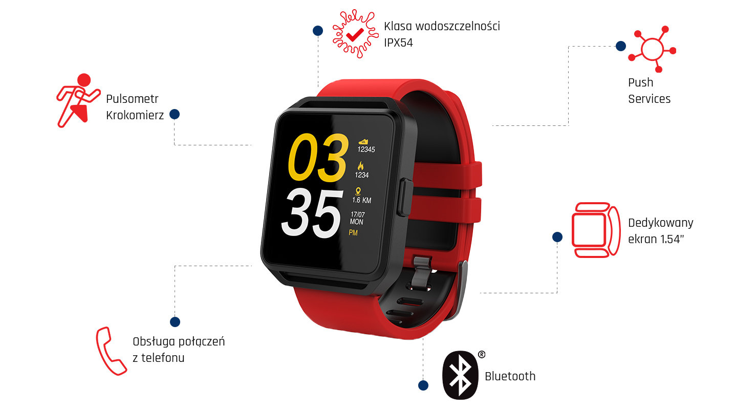 Czytelny kolorowy ekran dotykowy IPS o średnicy 1,54 cala i rozdzielczości 240 x 240 pix czyni obsługę zegarka łatwą i intuicyjną |