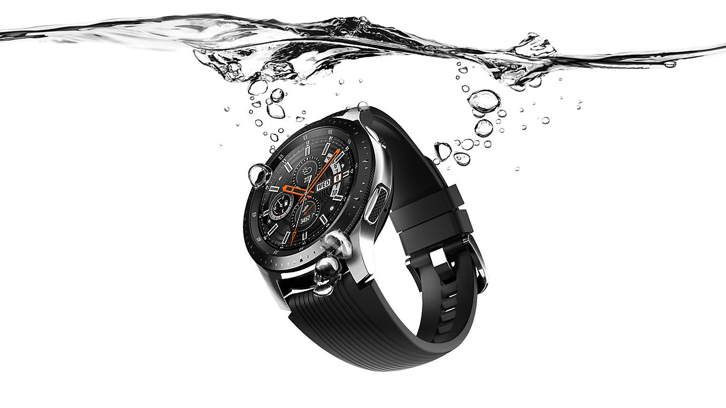 Stworzony z myślą o wytrzymałości Możesz nosić Galaxy Watch w deszczu i innych niesprzyjających warunkach. Wodoodporność do 5 ATM i wytrzymałość klasy wojskowej umożliwiają Ci większą aktywność na świeżym powietrzu nawet w trudnych warunkach. |