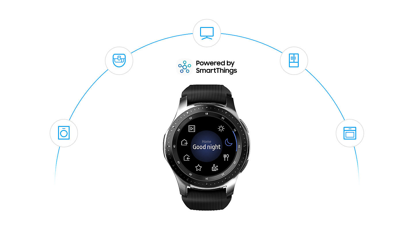 Kontrola różnych urządzeń Na podstawie schematu opisującego, kiedy śpisz, a kiedy jesteś aktywny, Galaxy Watch upraszcza Ci życie, kontrolując Twoje urządzenia. Funkcja domowego IoT umożliwia sterowanie sprzętami takimi jak telewizor, robot sprzątający czy klimatyzator. Możesz też korzystać ze spersonalizowanego zestawu komend, by realizować kilka działań jednocześnie. |