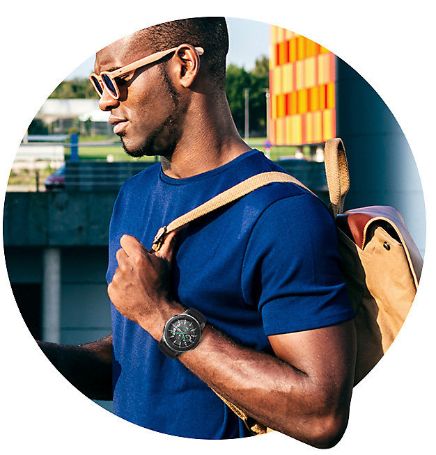Zawsze włączony i gotowy Dzięki trybowi Always On nie musisz wciskać przycisku czy obracać pierścienia, żeby wyświetlić godzinę. Ustaw wyświetlacz sAMOLED tak, by zawsze była ona widoczna, zarówno w dzień, jak i w nocy. |