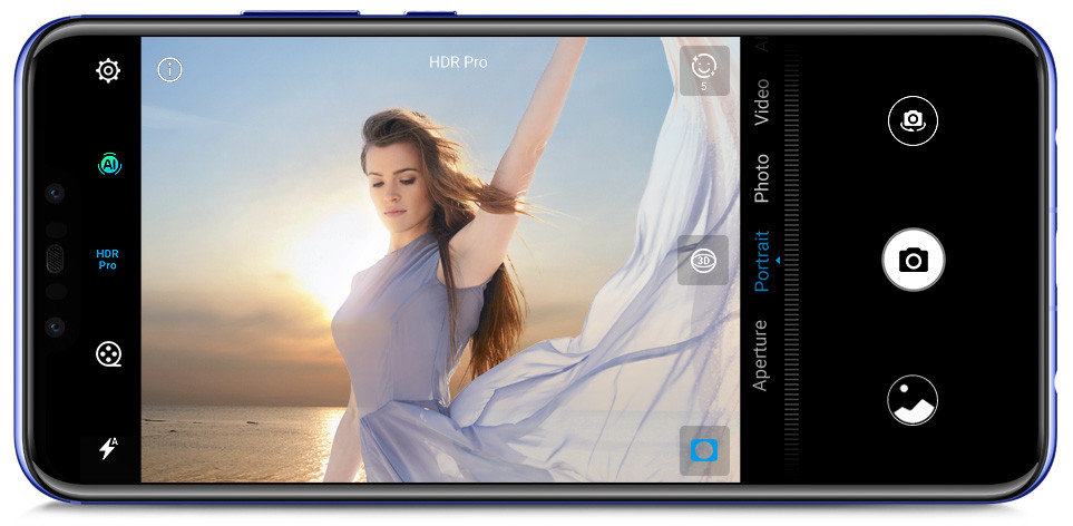 TRYB MASTER AI Tylny podwójny aparat HUAWEI nova 3 24 Mpix + 16 Mpix rozpoznaje i ulepsza do 22 różnych scen i obiektów! |