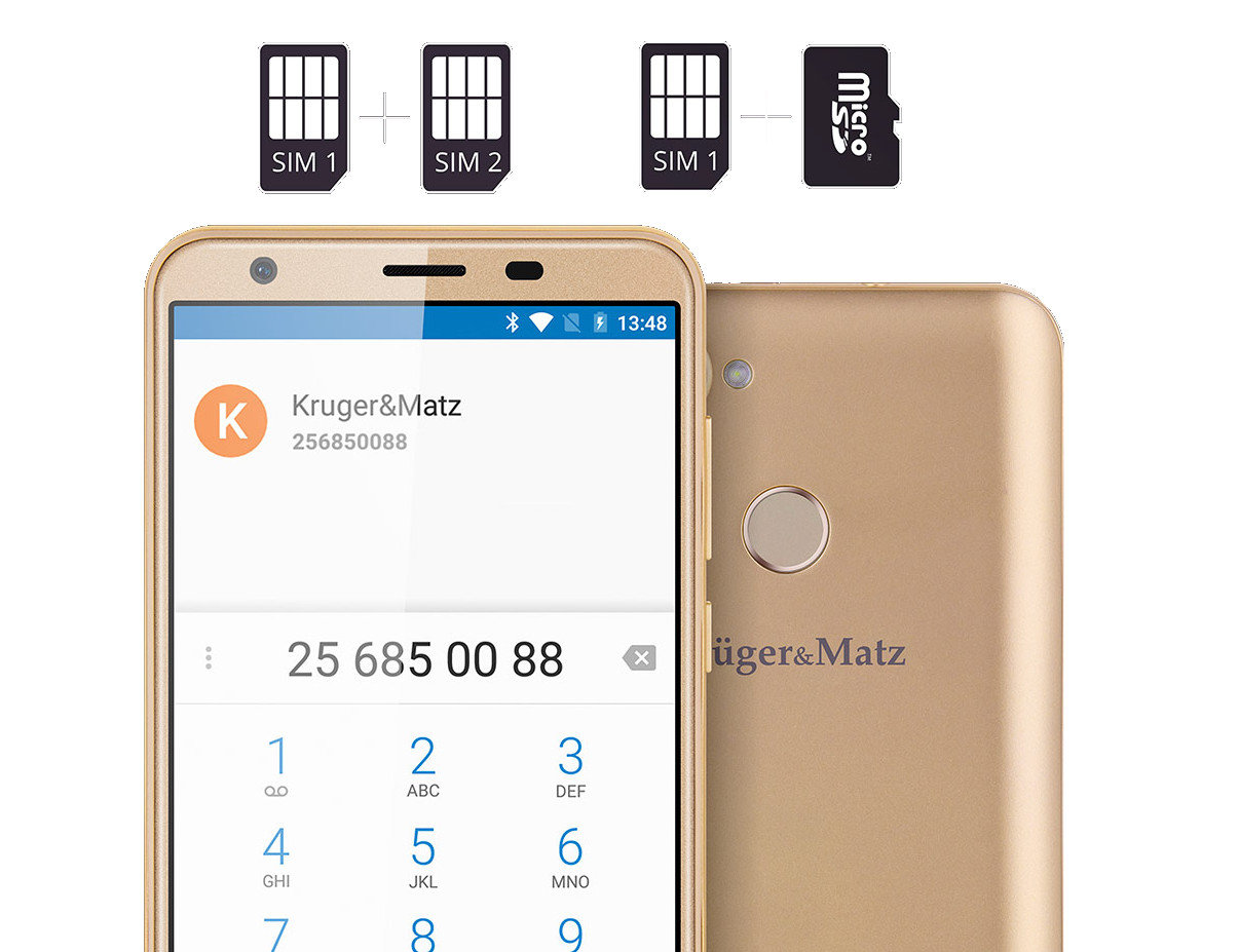 DWA RAZY WIĘCEJ Funkcja dual SIM sprawia, że Kruger&Matz FLOW 6, to urządzenie idealne dla ludzi aktywnych zawodowo, którzy posiadają dwa numery – służbowy i prywatny. Dodatkowy slot może zostać także użyty do rozbudowania pamięci smartfona za pomocą karty micro SD. |