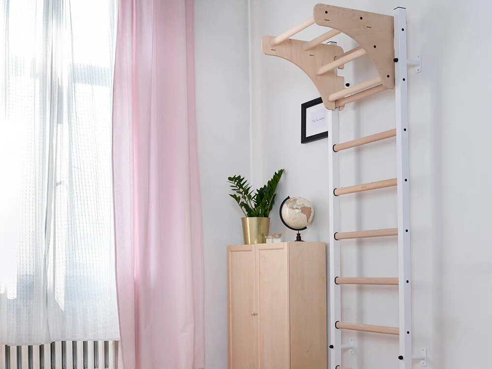 Drabinka gimnastyczna BENCHK 211W zajmuje niewiele miejsca w pomieszczeniu. Dzięki dołączonym do zestawu akcesoriom montażowym (stalowe profile) w prosty sposób można przymocować drabinkę do ściany o grubości minimum 12 cm.