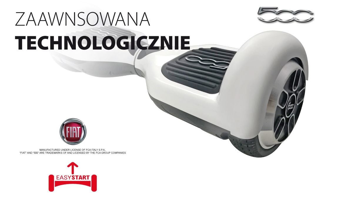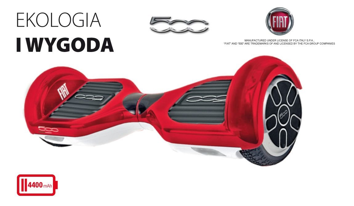 Dzięki deskorolce elektrycznej FIAT 500 możesz szybko, przyjemnie i łatwo przemieszczać się na duże odległości. Zaawansowana technologia z wykorzystaniem chipów i mikroprocesorów najnowszej generacji zapewnia delikatny start i miękkie hamowanie przy samoczynnym równoważeniu i doskonałym trzymaniu się podłoża sprawia, że jazda jest prosta a zarazem ekscytująca.