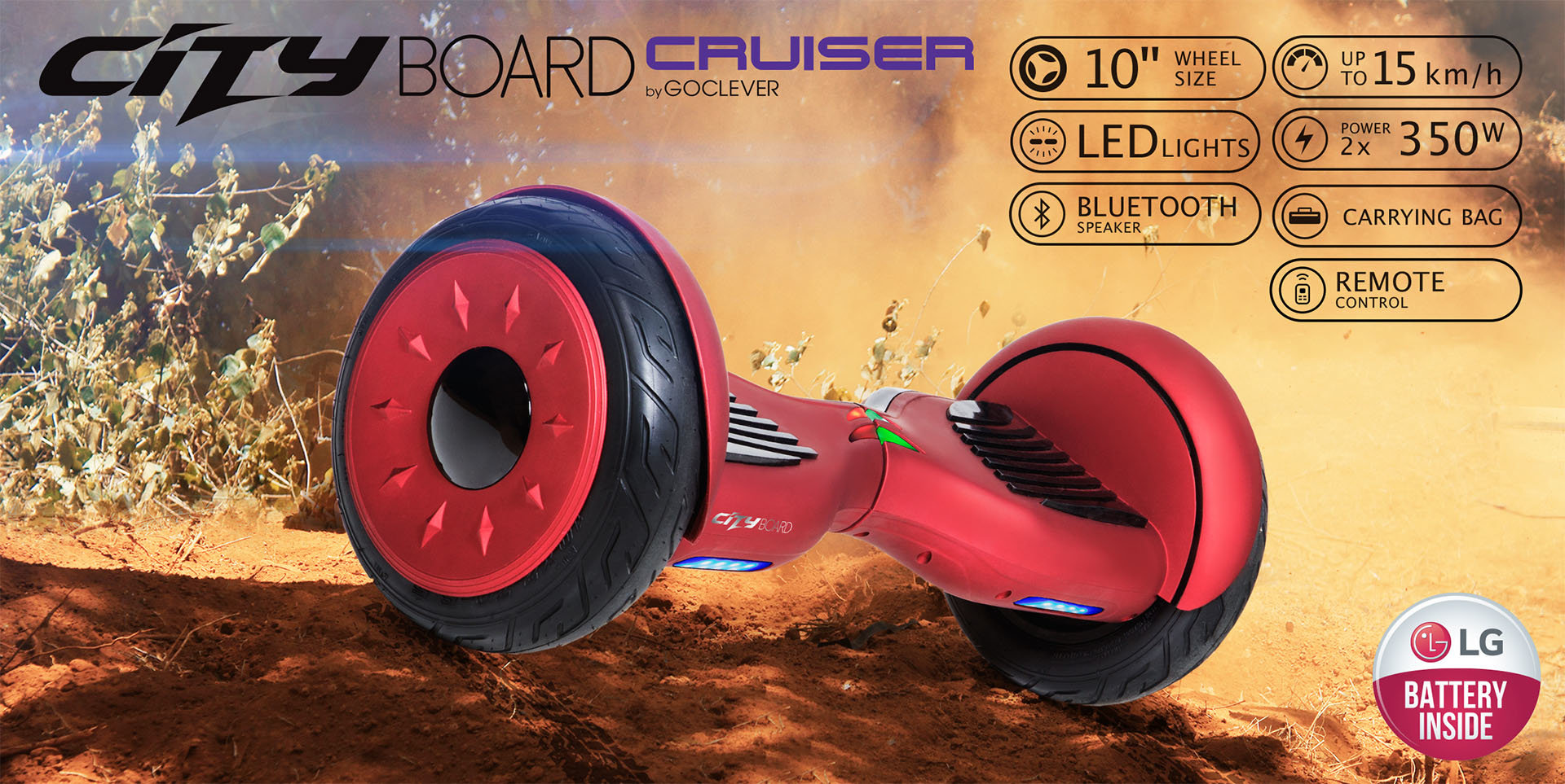 Ten inteligentny produkt mobilny wnosi element zabawy do codzienności i sposobu przemieszczania. Deska jest duża i sprawdzi się w każdych warunkach dzięki zastosowaniu 10-calowych kół o dużej przyczepności. Minimalizują one kąt przechyłu i zapewniają stabilność. Konstrukcja gwarantuje bezpieczeństwo oraz zapewnia dynamiczność i płynność ruchu. Kolorowe światła LED świecą się, gdy urządzenie jest w ruchu.