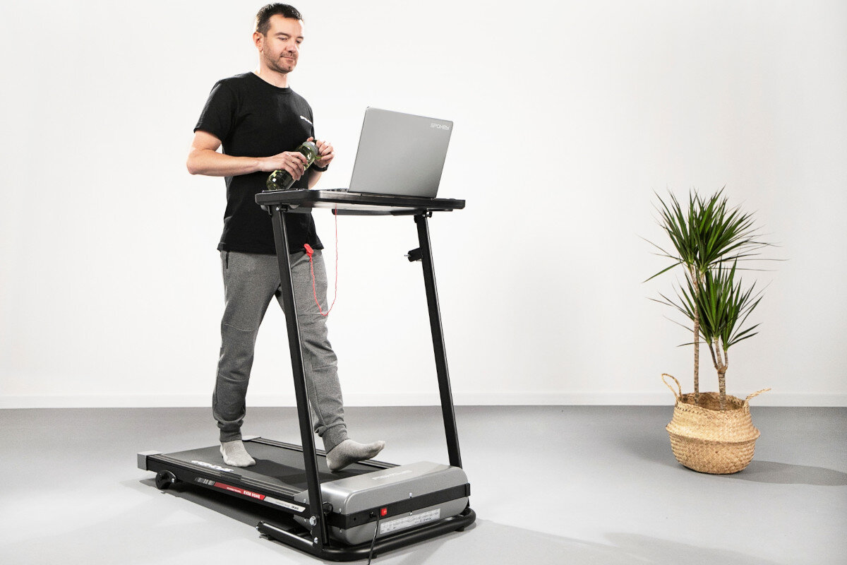 Bieżnia elektryczna SPOKEY Even Home to sprzęt stworzony z myślą o tym, by ćwiczenia były komfortowe i bezpieczne, a przy tym efektywne. I wcale nie muszą być nudne! Na biurku możesz ustawić laptop albo tablet i nadrabiać seriale, oglądać inspirujące programy albo czytać książki. Rób to, co lubisz najbardziej, i trenuj jednocześnie.