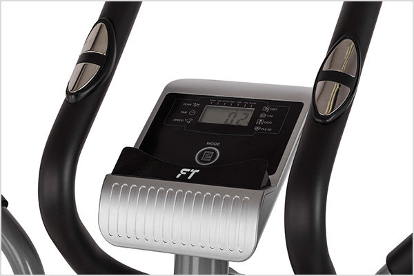 Wyświetlacz LCD Orbitrek jest wyposażony w wielofunkcyjny komputer z wyświetlaczem LCD. Prezentujący najważniejsze informacje o przebiegu każdego treningu: czas ćwiczeń prędkość przebyty dystans ilość spalonych kalorii pomiar pulsu (sensory mierzenia pulsu zamieszczone w rączkach) funkcja SCAN (naprzemienne wyświetlanie wszystkich danych) |