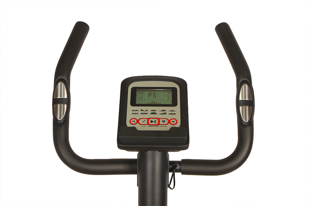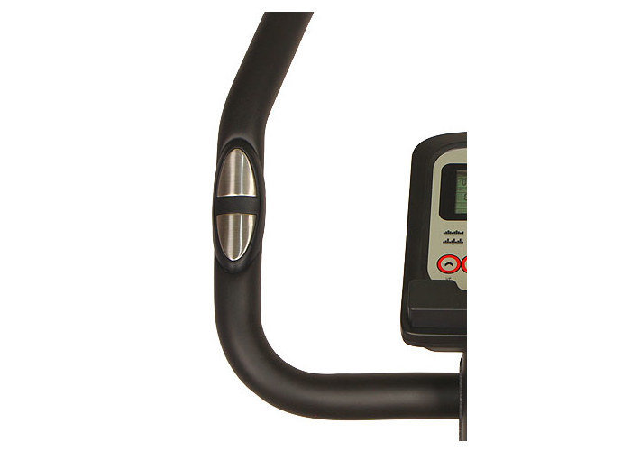 W uchwytach zostały zamontowane czujniki pulsu dzięki którym komputer rowerka kontroluje i wyświetla informacje dotyczące Twojego stanu.