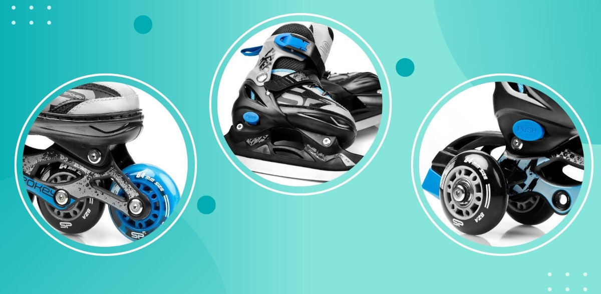 Łyżwy, rolki, wrotki i rolko-wrotki w jednym? Poznaj SPOKEY QUATTRO - praktyczne rozwiązanie dla najbardziej wymagających małych sportowców! Jest to najlepsza opcja, którą można regulować w rozmiarze. Dzięki temu łyżworolki rosną razem z dzieckiem i nie trzeba co kilka miesięcy kupować nowej pary. Szybka i łatwa regulacja zajmuje dosłownie kilka sekund i pozwala na prawidłowe ustawienie buta w stosunku do stopy dziecka.